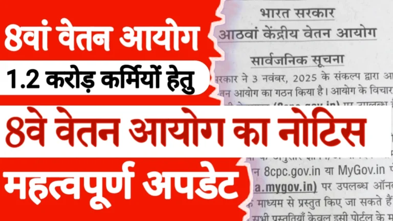 8वां वेतन आयोग हेतु 1.2 करोड़ कर्मचारी हेतु आयोग का नोटिस जारी, बड़ा अपडेट 8th CPC Employees Notice Released