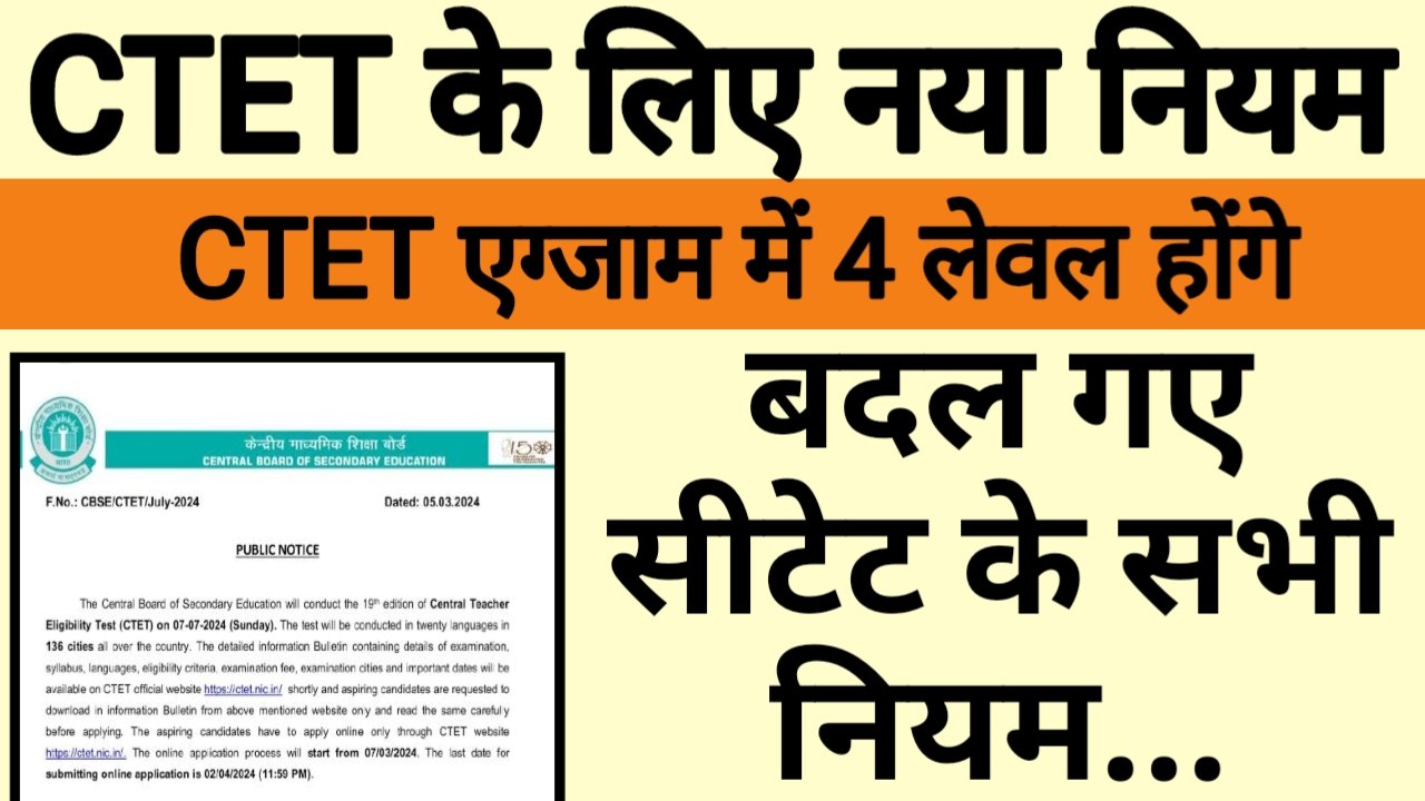 केंद्रीय माध्यमिक शिक्षा बोर्ड के माध्यम से सीटेट एग्जाम के नए नियम का ऐलान कर दिया गया है| जो भी शिक्षक बनने का सपना देख रहे हैं वह सभी लाखों उम्मीदवार हेतु यह खबर बेहद महत्वपूर्ण है| ऐसे ठीक के माध्यम से नए दिशा निर्देश के आधार पर आप सीटेट एग्जाम का नया नियम का दायरा बढ़ चुका है पहले जहां यह परीक्षा केवल कक्षा 1 से लेकर 8 तक के शिक्षकों के लिए होता था तो वहीं पर सीटेट एग्जाम नए नियम के तहत माध्यमिक उच्च माध्यमिक के शिक्षकों को भी पात्रता परीक्षा पास करना पड़ेगा|