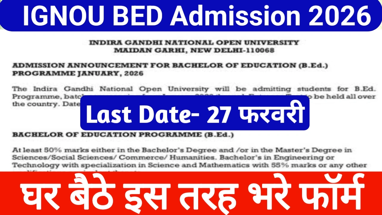 IGNOU BED Admission 2026: अगर आप शिक्षा क्षेत्र में अपना कैरियर बनाना चाह रहे हैं या फिर करियर बनाने का सपना देख रहे हैं तो युवाओं हेतु काफी बड़ा अपडेट निकल कर आ चुका है| इंदिरा गांधी नेशनल ओपन यूनिवर्सिटी के द्वारा B.Ed पाठ्यक्रम 2026 हेतु आवेदन प्रक्रिया को शुरू कर दिया गया है| जितने भी इच्छुक उम्मीदवार हैं बिना किसी भाग दौड़ के अपने घर से ही ऑनलाइन आवेदन कर पाएंगे| विश्वविद्यालय के द्वारा आवेदन की अंतिम तिथि 27 फरवरी 2026 नहीं किया गया है| इसलिए अभ्यर्थियों के लिए सलाह दिया जा रहा है| इस समय रहते ही अपने फार्म को अवश्य भरते हैं| ताकि आखिरी समय का तक कोई तकनीकी दिक्कत ना आए और वह आसानी से बच सकें|